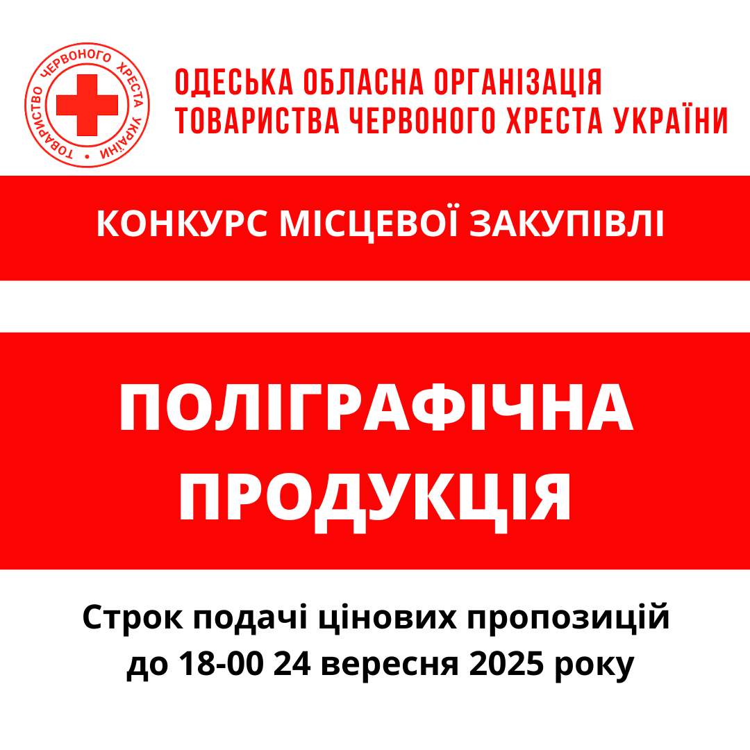 ГО «Одеська обласна організація Товариства Червоного Хреста України» оголошує конкурс на місцеву закупівлю поліграфічної продукції.